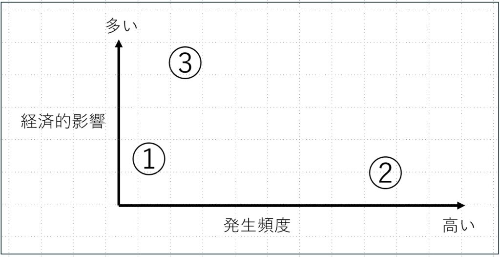 そして、挙げた不安を「発生頻度」と「経済損失」で整理します。